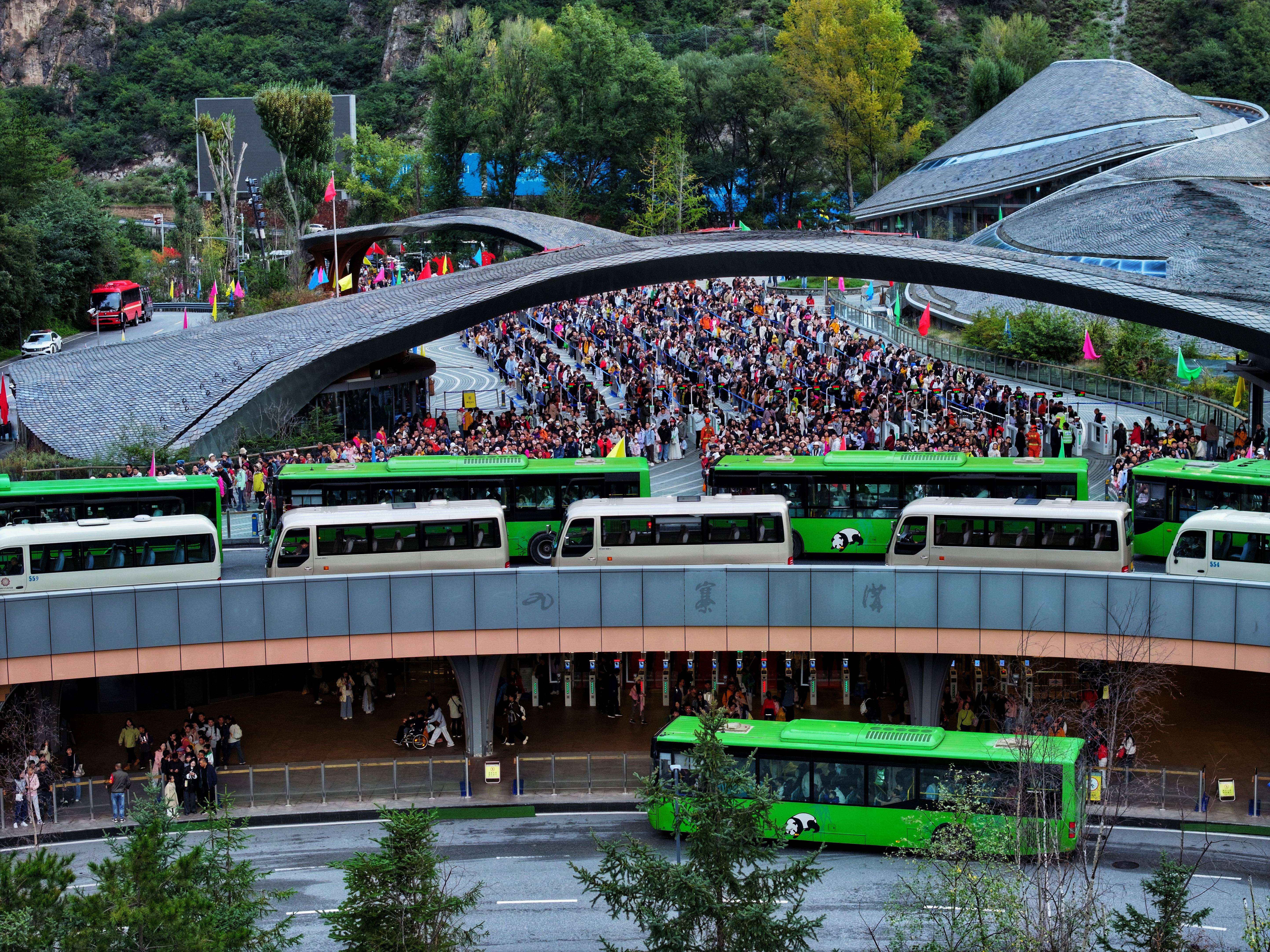 图为国庆中秋假期九寨沟景区盛况