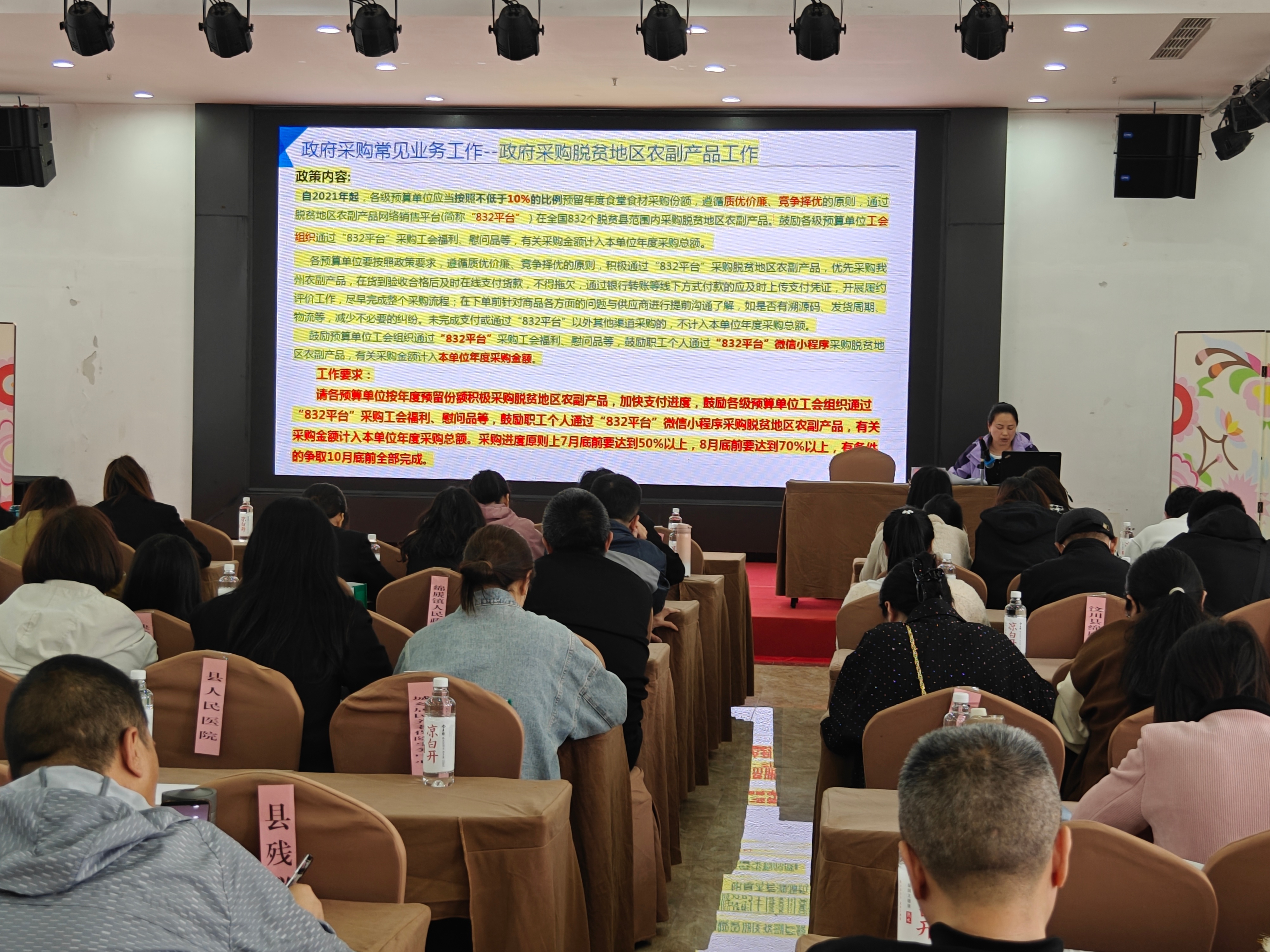 精心宣传引导,增强“影响力”。采取“线上+线下”相结合方式,通过专题培训、线上通知、专人电话等形式,为全县预算单位提供精准的政策解读与操作辅导,确保“懂政策、会操作”。同时,积极鼓励各单位工会和职工个人按照“质优价廉、竞争择优”原则,通过“832平台”采购脱贫地区农副产品,推动采购需求与脱贫地区供给精准对接。